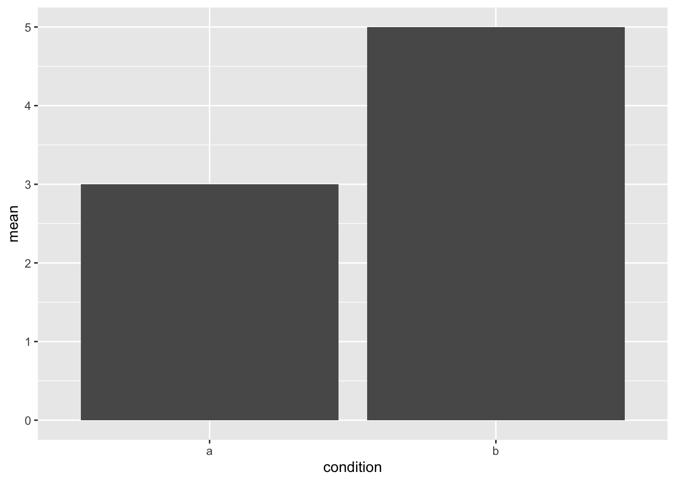You can string together different operations in a pipeline using the pipe operator: |>.2 The result of each line of code gets “piped” into the function on the next line as its first argument. For example, below I take some data (named my_data) and perform a series of operations, first changing its shape using pivot_longer(), then creating summary statistics for the mean and standard deviation separately by a grouping-variable, then I pipe the summary statistics into ggplot() to create a graph with a geom_col() layer for the geometry.